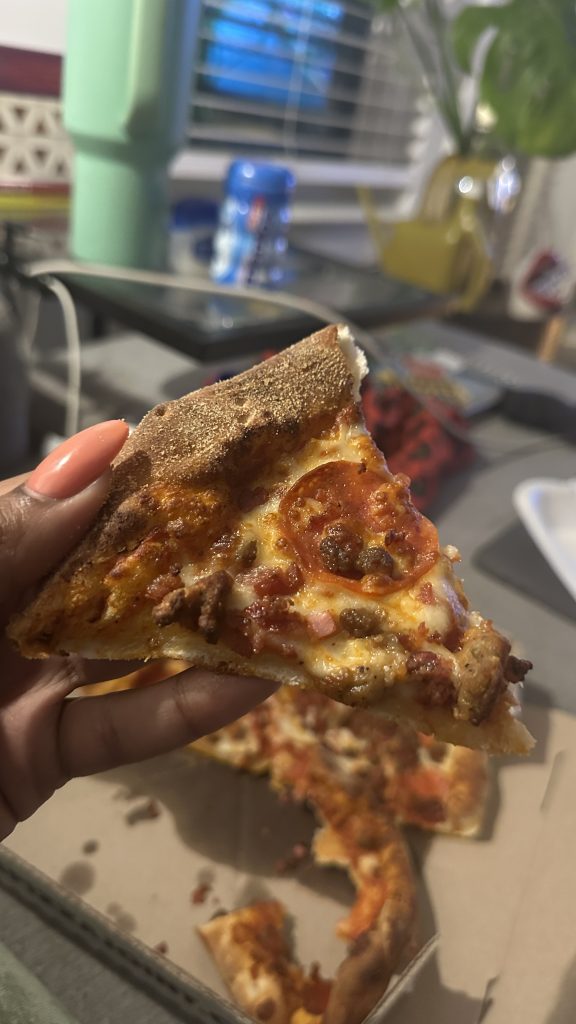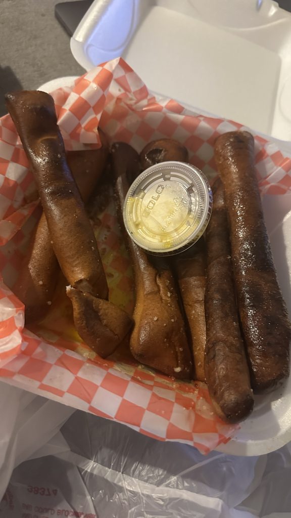 The “Sweet Stix” looked like a dog toy: clearly overcooked. I expected fluffy, pillowy cinnamon sticks, but what I got looked like someone cut the crust off an old pizza and tossed it in a box. I didn’t even want to try it, but figured I would, just to report back. One bite and it collapsed like stale pizza crust. Just as I thought: trash. There wasn’t a speck of cinnamon sugar to be found. Just dry, overcooked dough. I thought this would be a late-night treat, but it would’ve been better suited as a snack for a pet.